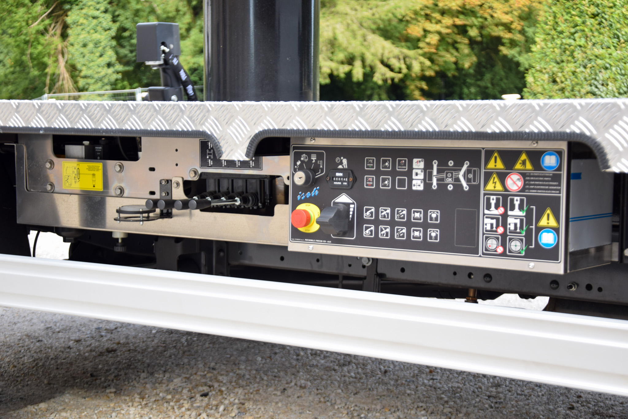 Se pueden añadir opciones como el kit de señalización que incluye giroscopio y trífaro, laterales abatibles, cajas de almacenamiento o protección de alto nivel. Esta plataforma aérea montada sobre chasis es perfectamente compatible con diferentes marcas de chasis, como Iveco Daily o Isuzu M21.